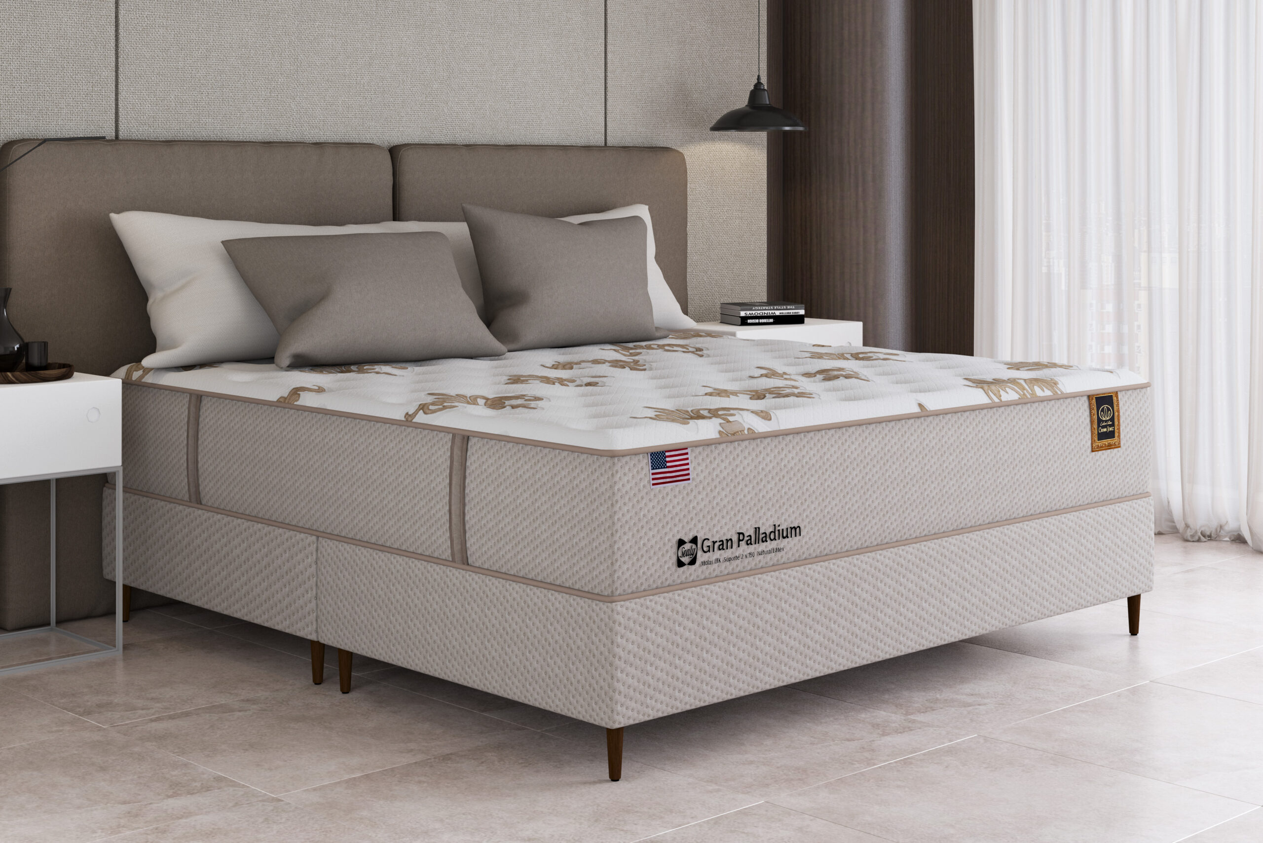O Colchão Gran Palladium Sealy apresenta um design elegante e sofisticado, que complementa a decoração do seu quarto e proporciona um ambiente de descanso requintado.
